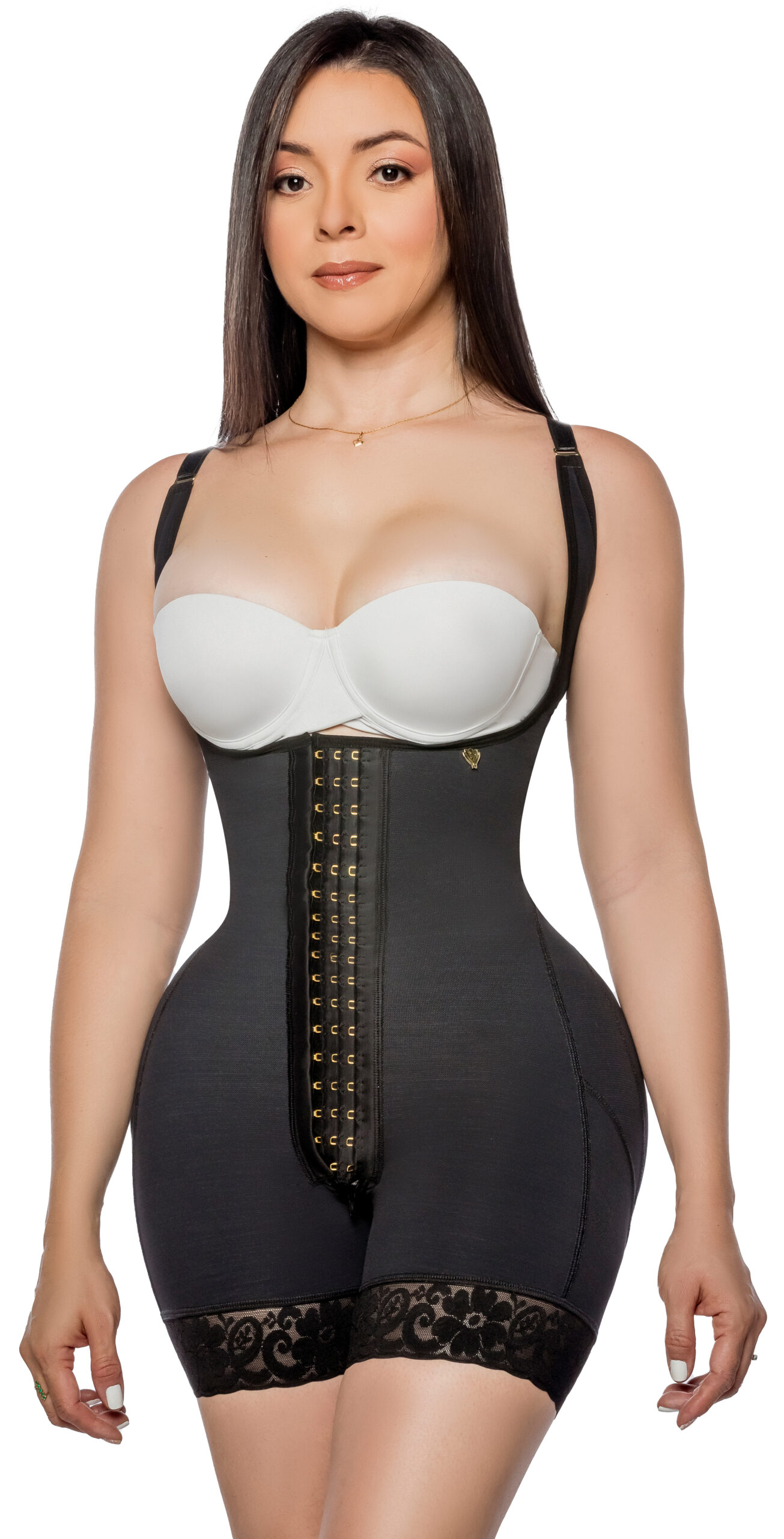 Heavy Duty Compression (I Love It), Posture Correction (it forces me into correct posture and I love it). Took inches off my waist immediately. Made my back boobs flat. Extra tummy hangover, invisible.The thigh elastic isn't binding.